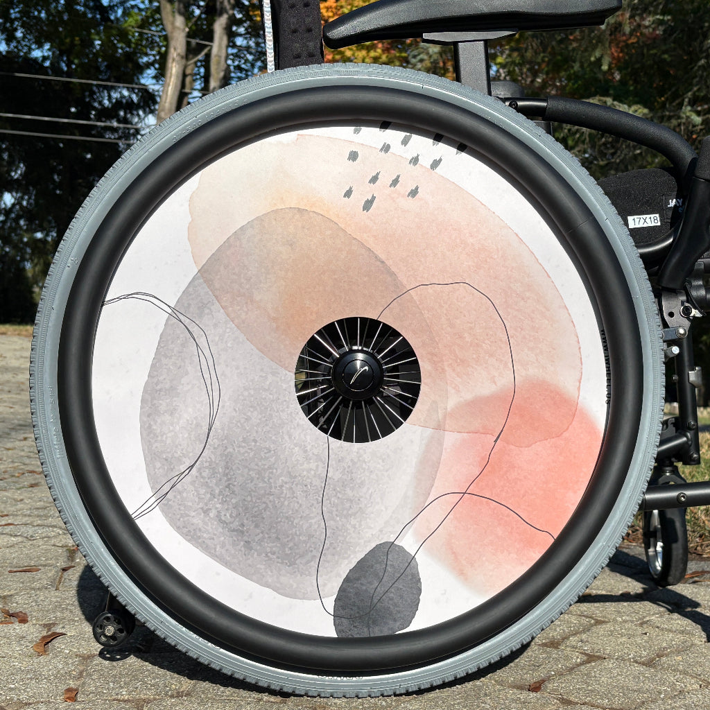The wheels shown in the examples below are 24". The measured diameter inside the push rims is 19 5/8" (or 50 cm), which is the size you’ll need to order for the wheel covers.